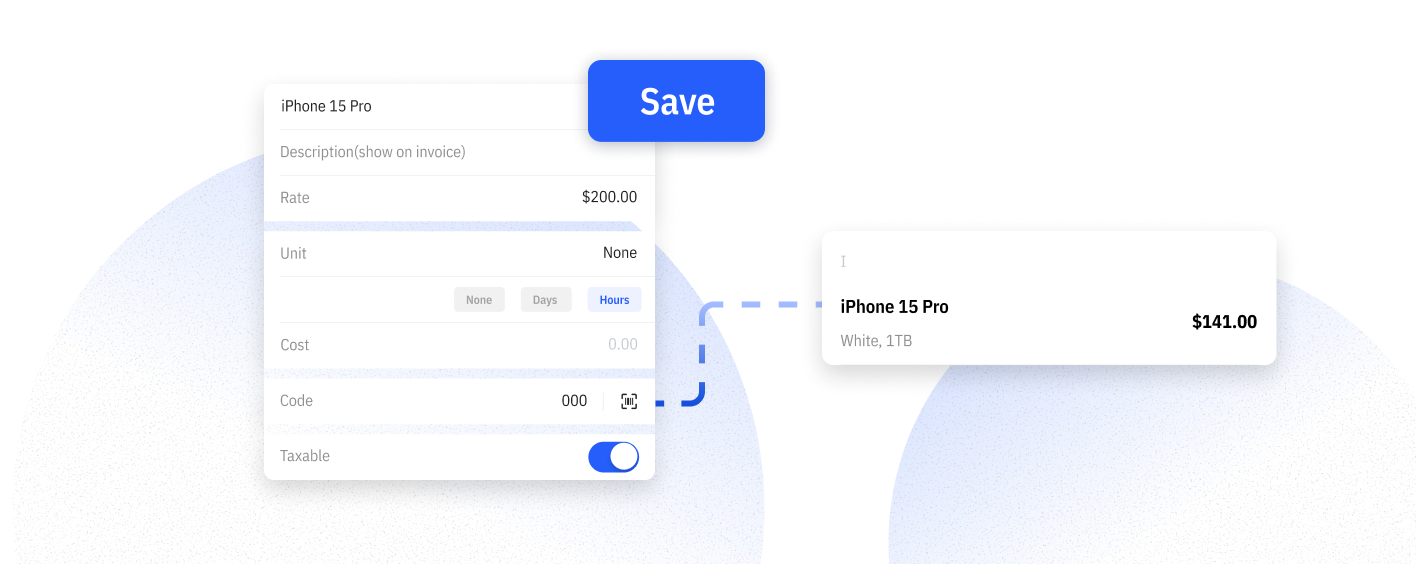 Save your products and services for reuse in invoices and estimates. Cut down repetitive typing, speed up billing, and maintain