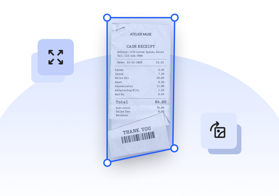 Capture full documents with precise edge detection and no manual cropping.